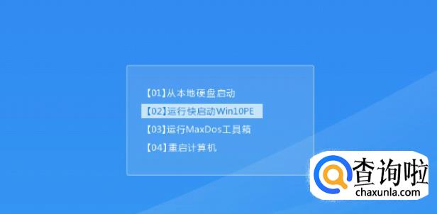 通过u盘启动进入到快启动的主菜单界面(u盘启动盘制作教程),用键盘上的上下键将光标移至“【02】运行快启动Win10PE”并回车确定,如图所示。
