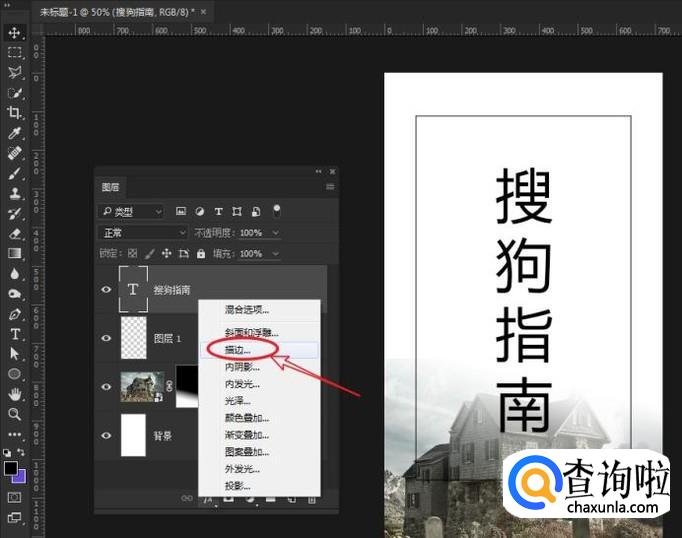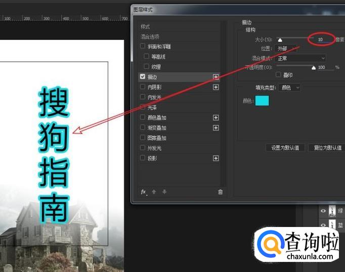 在文本图层上,添加描边效果。