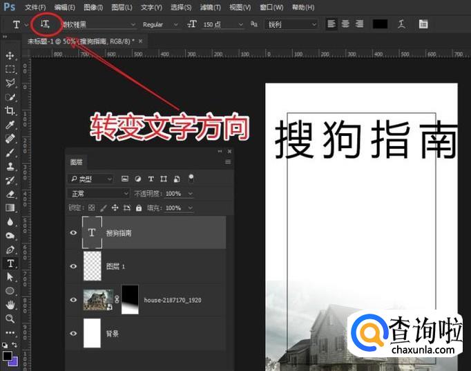 使用文本工具输入文本内容,在文本选项工具栏找到转变文字方向的按钮,将文字转变为竖向的!