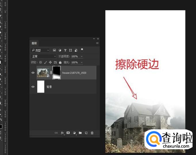 使用画笔工具,将前景设为黑色,擦除画面上的硬边。