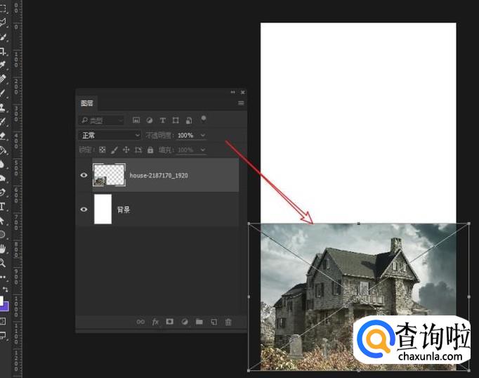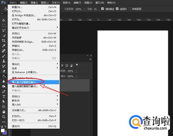 在文件菜单,选择“置入嵌入的智能对象”,快速将其添加到空白文档上。