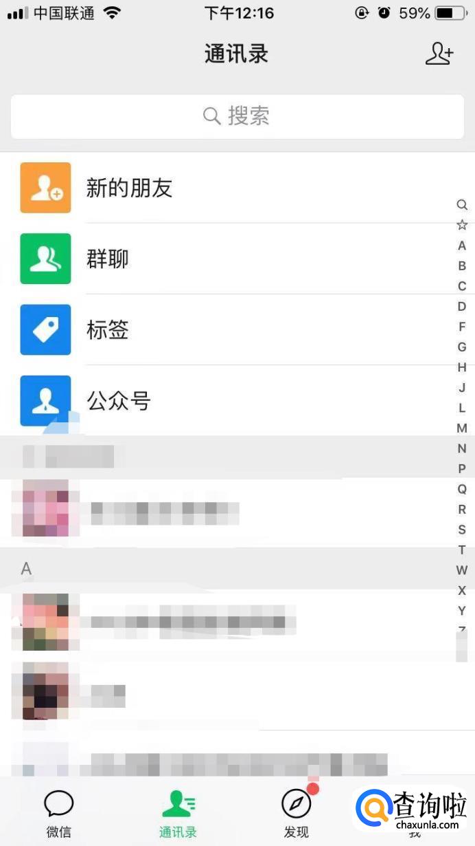 首先打开微信点击“通讯录”,打开你想查看是否屏蔽朋友圈的好友。
