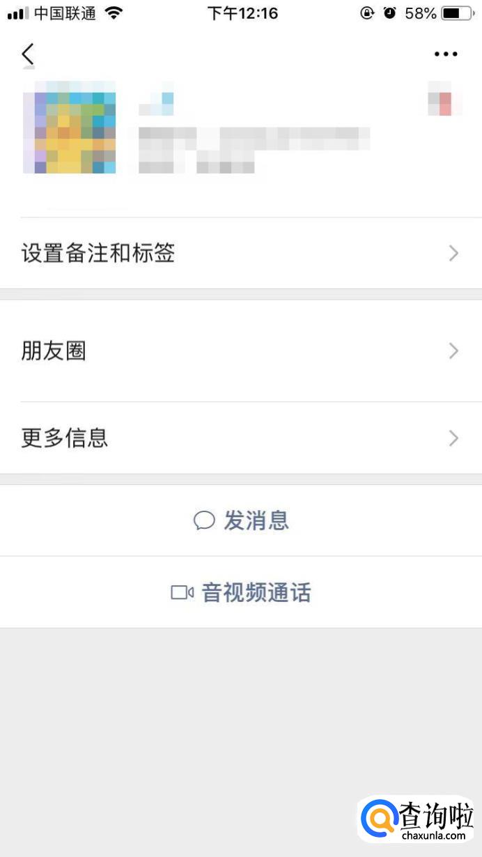 也就是说出现如图所示看到这样的空白界面,那么对方很大可能是把你给屏蔽了。