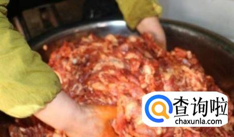 然后再在猪肉里面加入250克的糖、70克食盐,然后再倒入125克酒,搅拌后就腌制4个小时左右。