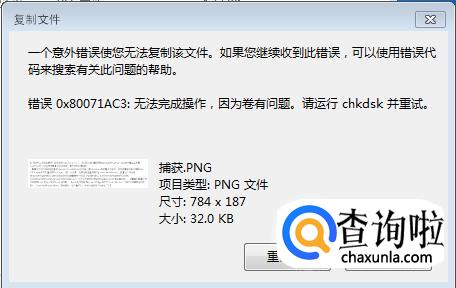 在日常的工作学习中,我们经常会用到U盘拷贝文件。当我们将文件复制到U盘时,有时会提示错误0x80071AC3:无法完成操作,因为卷有问题,请运行chkdsk并重试。那么如果我们碰到错误0x80071AC3该如何处理呢?