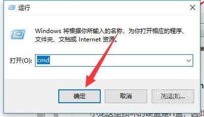 进入运行界面之后,输入“cmd”指令,点击“确定”按钮,如图所示。