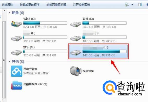 修复完成后,在打开“我的电脑”,即可看到移动硬盘被识别出来了,如图所示。