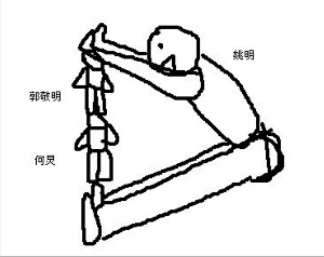 有人问: 郭敬明,武艺,姚明三个人躺在地上,能不能组成一个三角形?