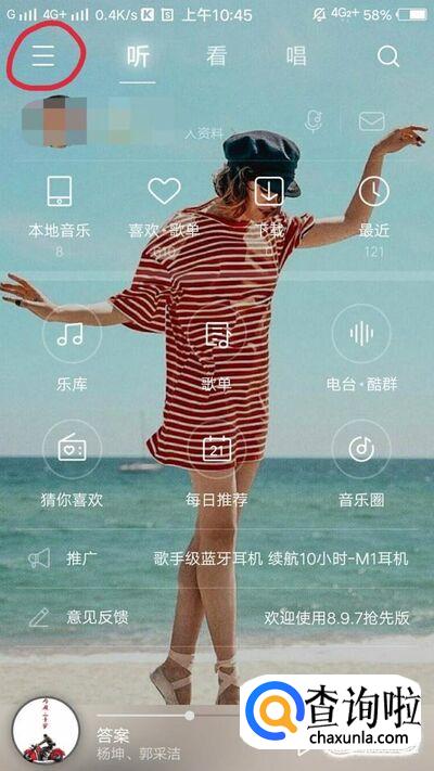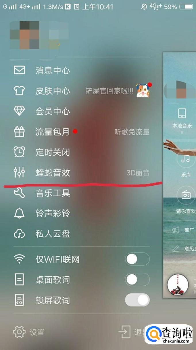 在主页里面点击左上角的按钮,进入设置页面。可以在里面找到蝰音效果。