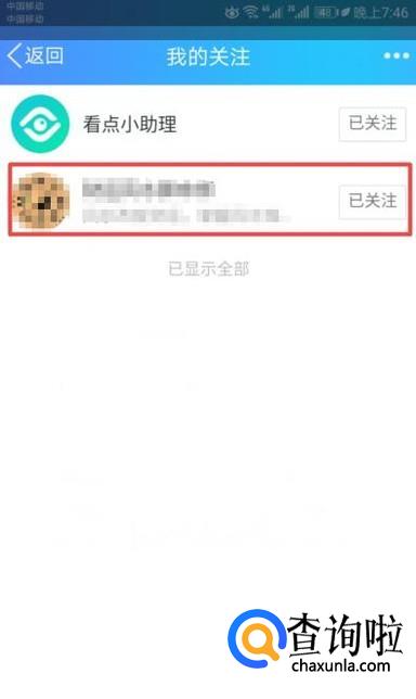 弹出的界面,我们点击已关注;