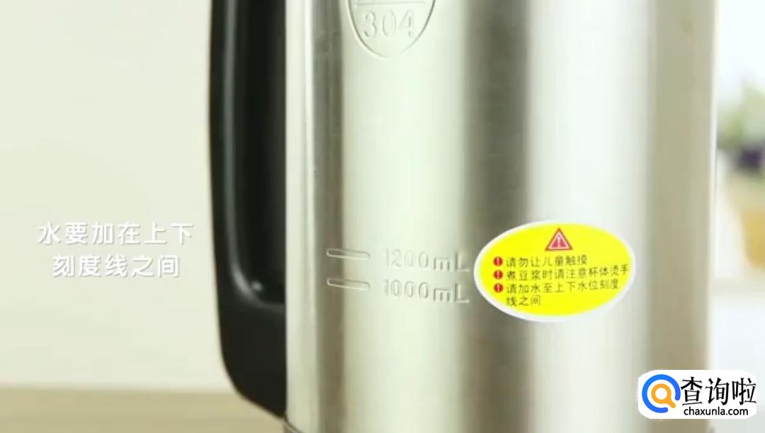 我们加入的清水要在豆浆机外的刻度线之间,然后我们插上电源。