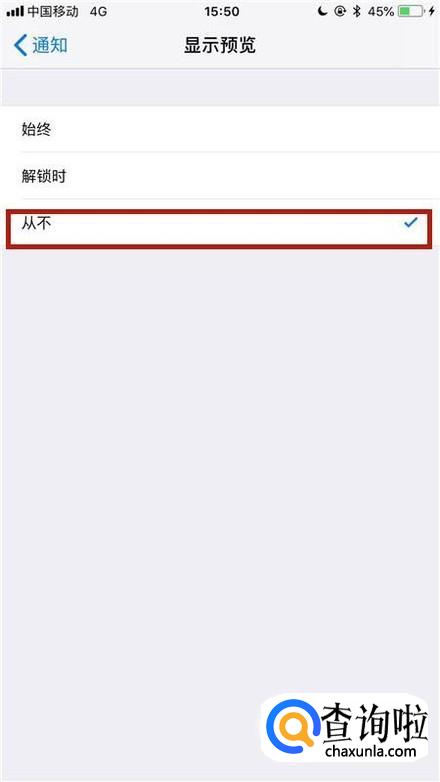 然后选择从不,如下图所示。