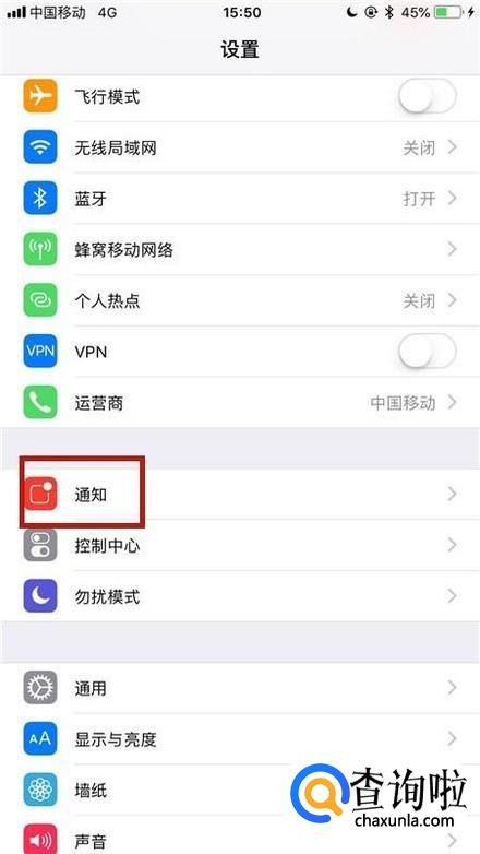 然后点击通知,如下图所示。