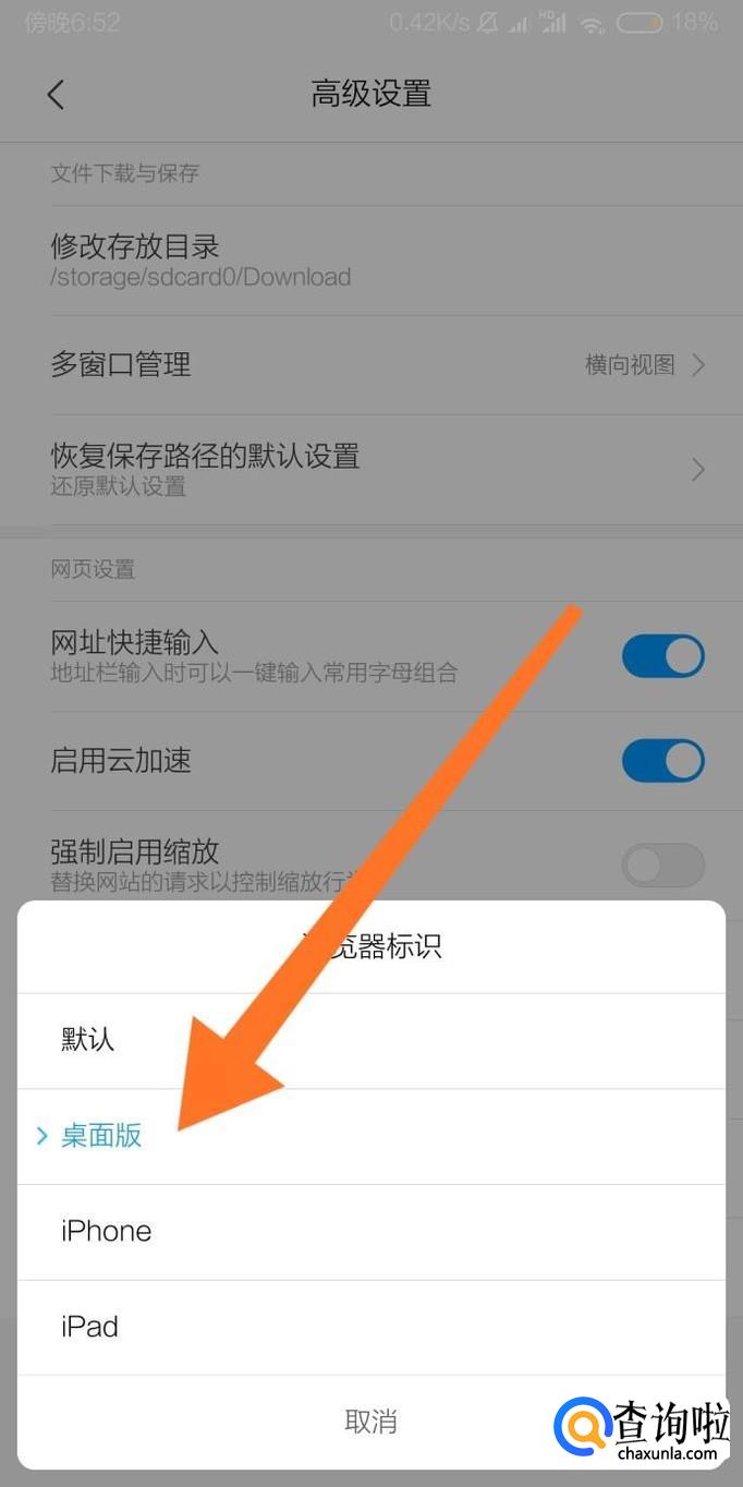 最后把浏览器标识改成“桌面版”即可。