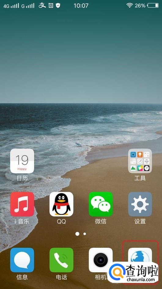 首先,我们打开手机,看到主界面上的浏览器图标,点击进入。