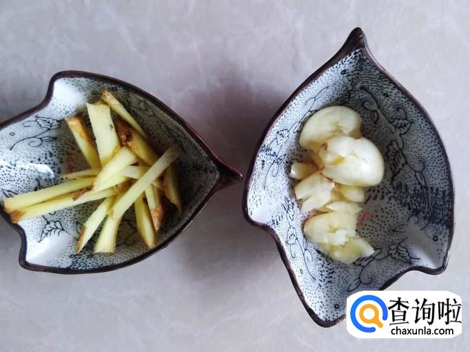 姜丝、蒜米准备好。