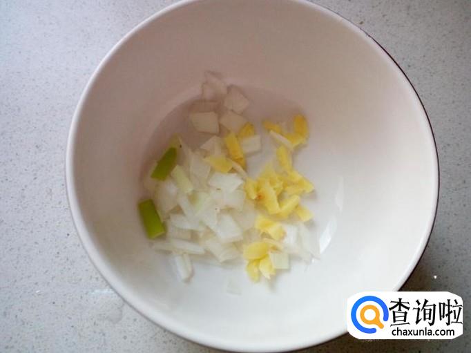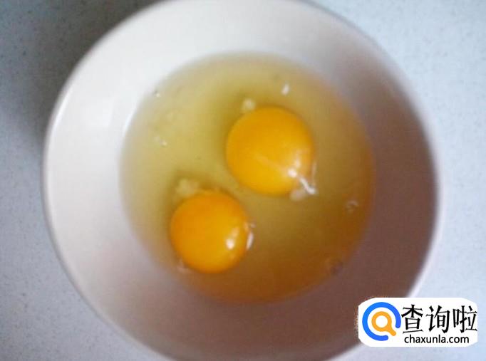 打两个鸡蛋在碗中,切好葱,姜备用。
