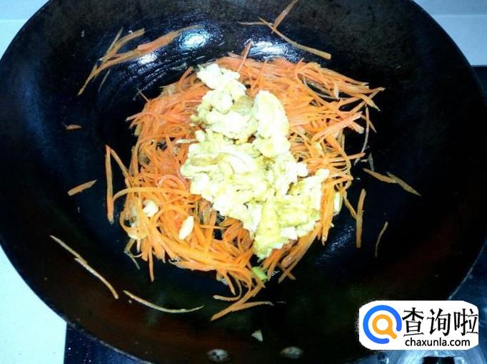 炒至断生即可,鸡蛋倒入锅中略翻炒一下。