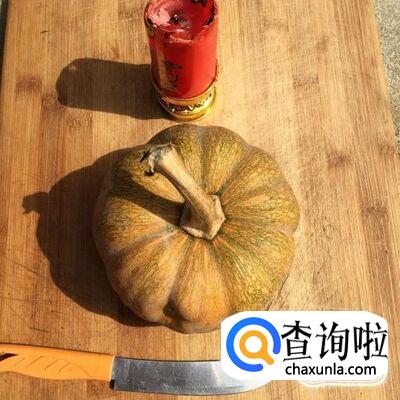 首先我们要准备一把小刀,一个小南瓜、一截蜡烛。