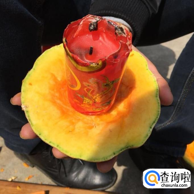 接着用小半截的铁线把南瓜的底座和蜡烛连接在一起,如下图所示。为了让蜡烛能够更好的跟南瓜紧密的结合在一起,可以用蜡滴在蜡烛的四周就可以了。