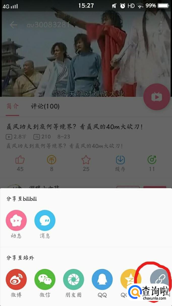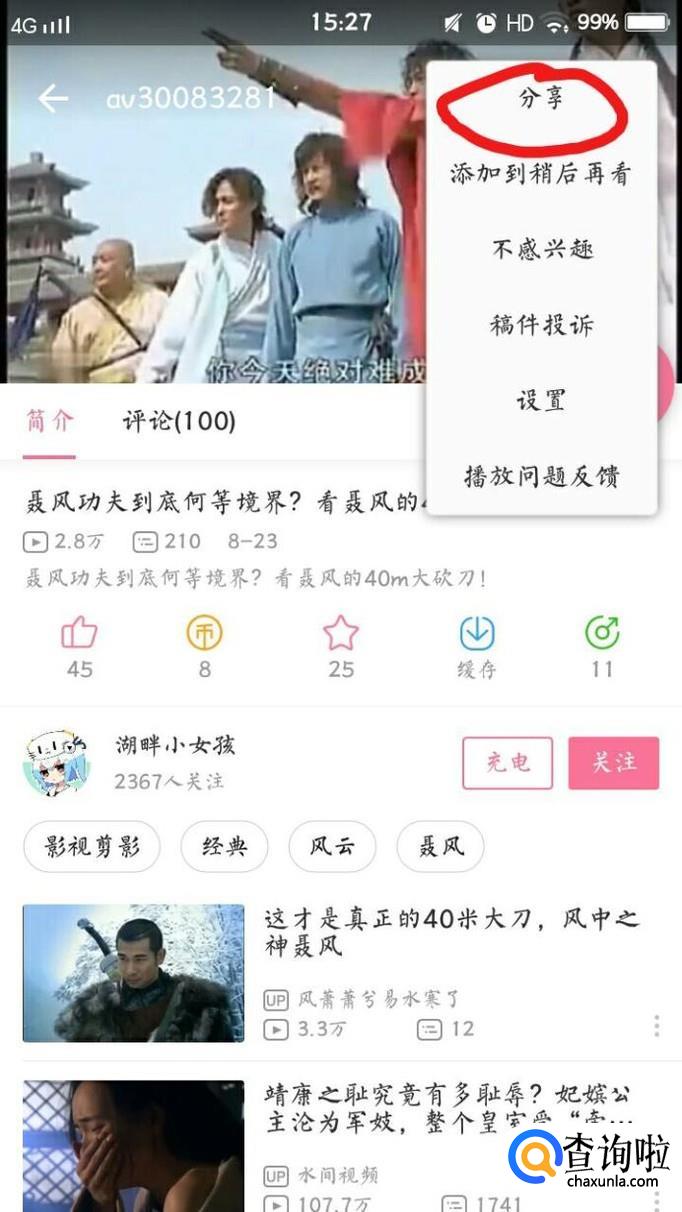 然后视频右上角出现分享,点击进入