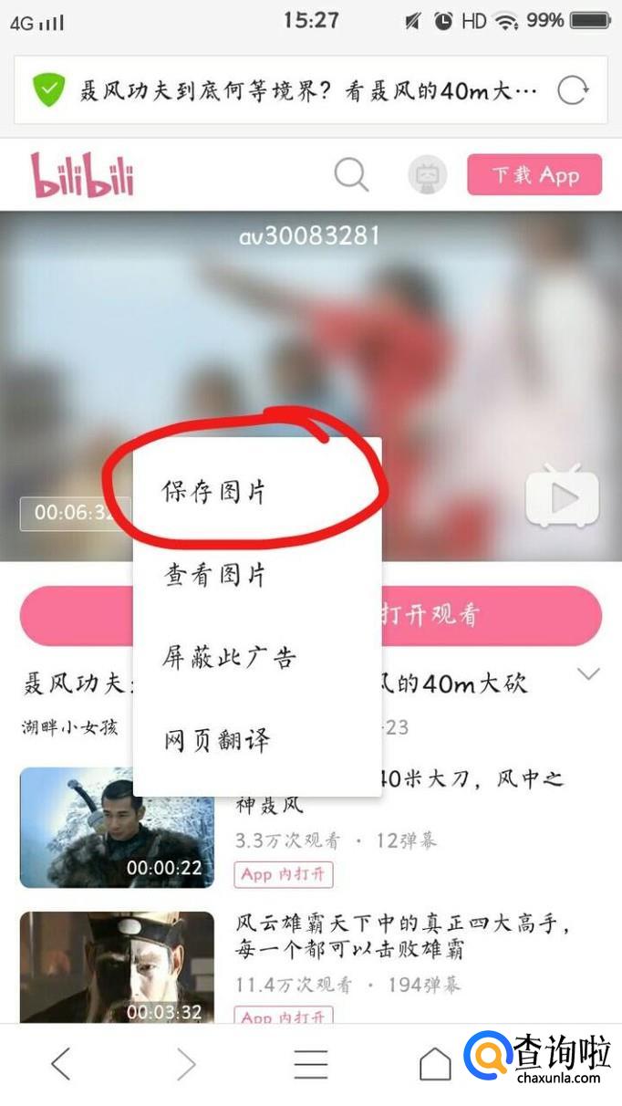 最后,任意打开一个浏览器,粘贴刚才复制的链接,会出现视频封面,长按封面保存图片。