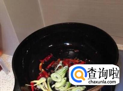 锅中放入食用油,油热后,放入葱和辣椒炝锅。