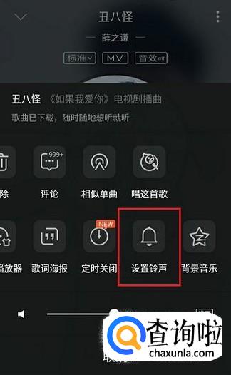 在对该歌曲的操作选项中,找到并点击“设置铃声”选项。
