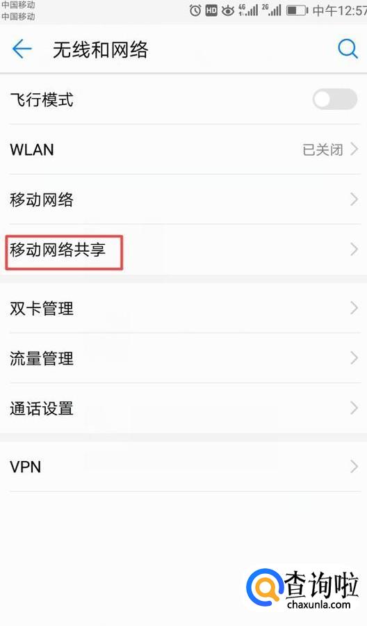 弹出的界面,我们点击移动网络共享;
