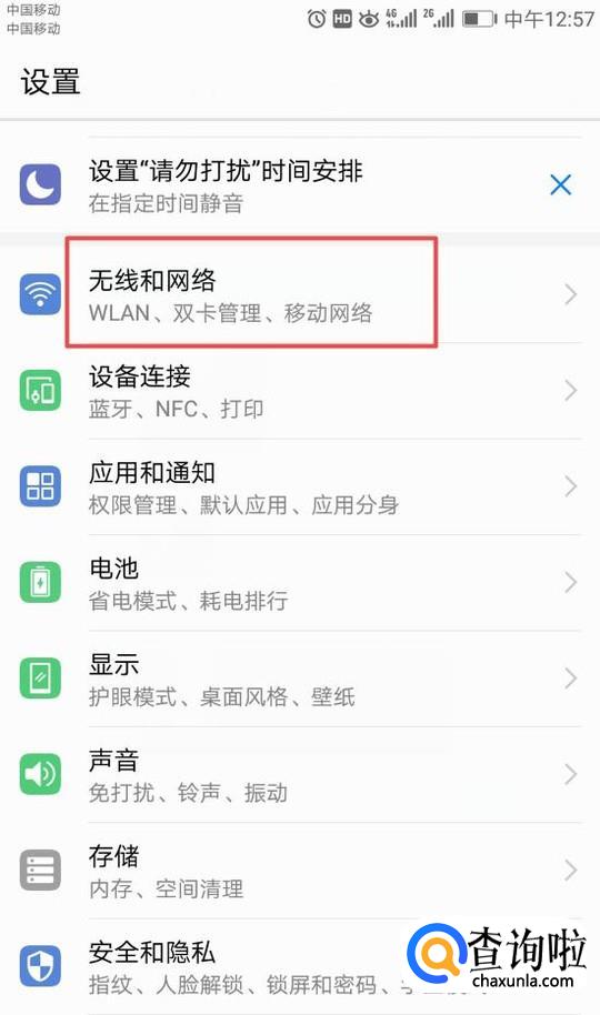 进入设置后,我们点击无线和网络;