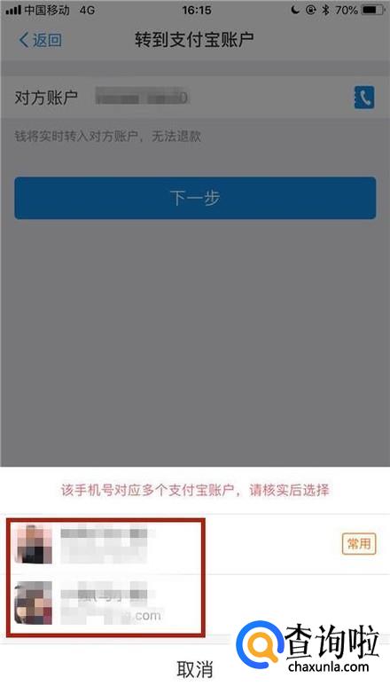 然后输入对方的手机号码并点击下一步,如下图所示。