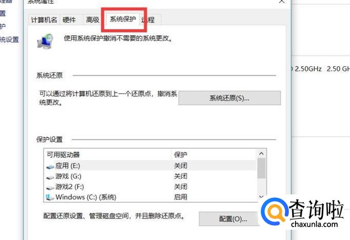 在上方的选项栏里选择系统保护那一栏,鼠标单击进入。