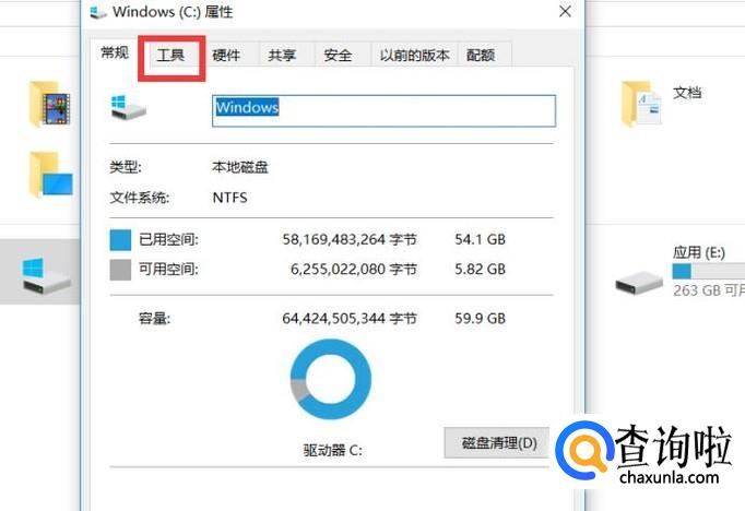 在属性面板里,选择工具按钮(win10与win7,win8一致)