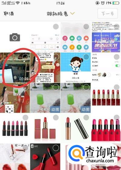 选择添加图片之后,会有本机相册中的照片和视频弹出,选择要上传的视频即可。