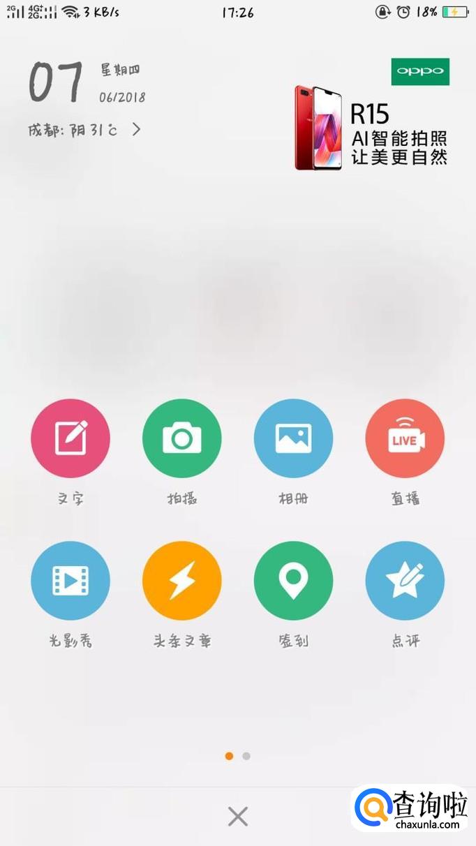 打开微博过后,点击下方正中的加号。