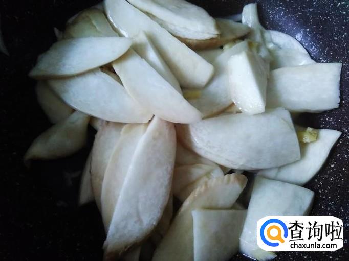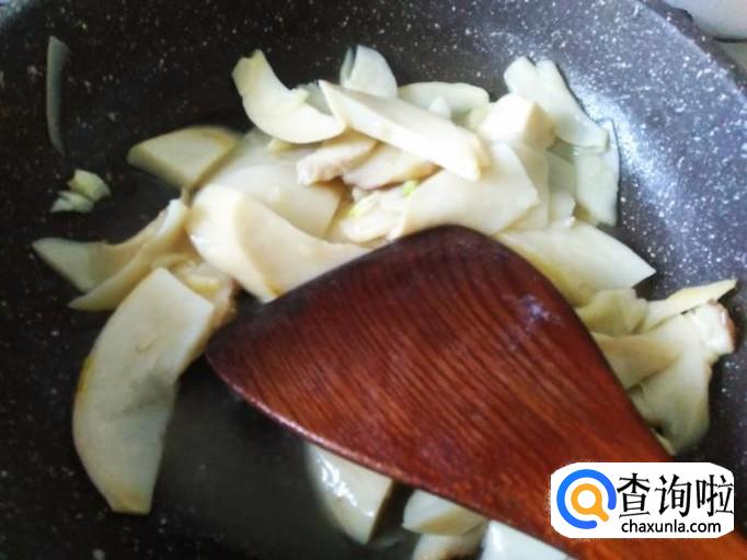 然后打开翻炒一下铲铺到杏鲍菇面上就可以了。