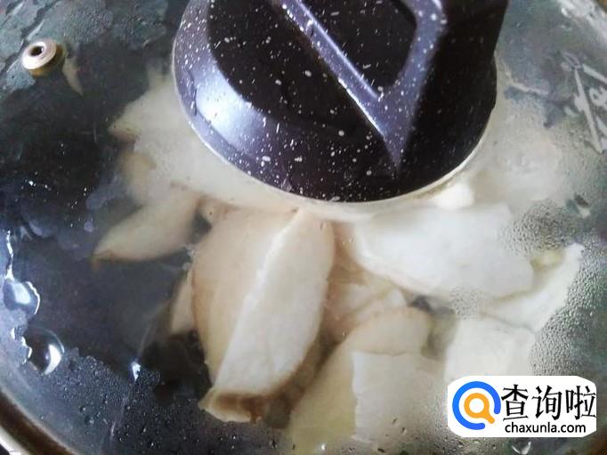 然后盖上盖子小火焖4分钟左右,不用加水,因为杏鲍菇含水分很多。【菇类一定要煮熟,】