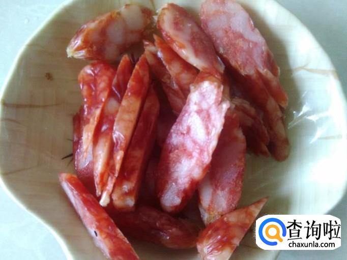 把腊肠侧刀切成片,杏鲍菇也切成片备用。