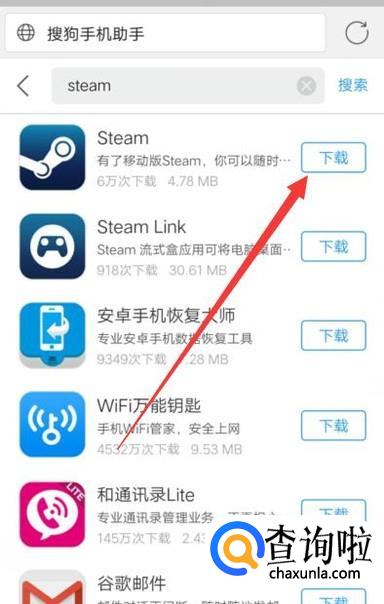 进入之后,搜索“steam”,并将其下载,如图所示。