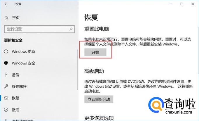 弹出的界面,我们点击图示中的开始;