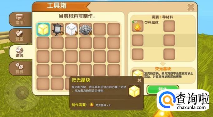 一个荧光晶块可以由9个荧光晶体合成,因此我们需要采集荧光晶体。