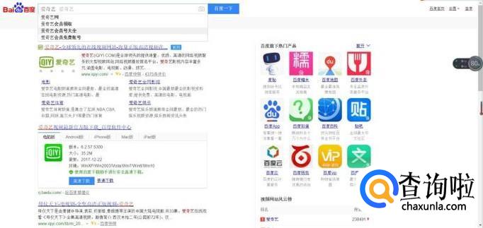如图所示,在百度中输入爱奇艺,点击进入官网。