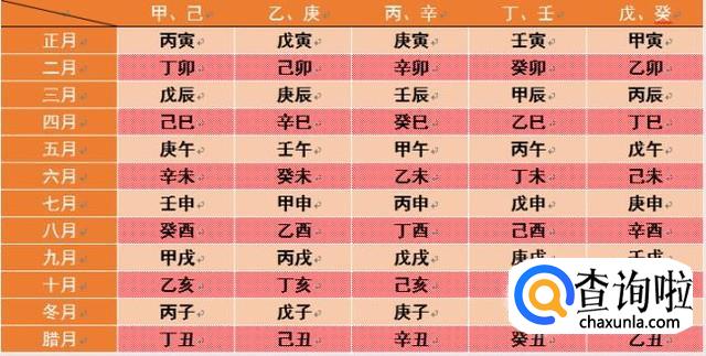 月干支的计算就不像日干支那么容易了,月支的计算还好一些,因为一年12个月,有12个地支,所以每年都是固定的。有首计算月干支的歌谣是这样的:甲己之年丙作首,乙庚之岁戊为头,丙辛之岁庚寅上,丁壬壬寅顺行流,若言戊癸何方起,甲寅之上去寻求。这个歌谣的意思是说逢甲或己的年份正月是丙寅,逢乙或庚的年份正月是戊寅,以此类推,下图将会给大家作详细的表达。下面我们来看一下2019年3月的月干支是什么呢?因为2019年是己亥年,所以3月的干支应该是丙寅。因为算八字是按照节气来算,所以不是戊辰。