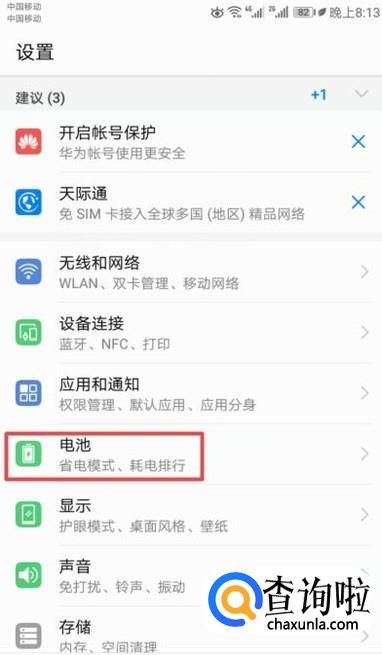 进入设置后,我们点击电池;