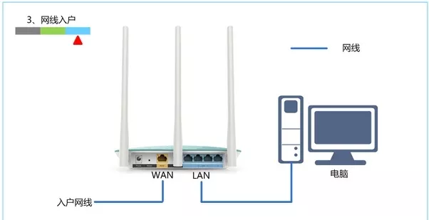 3、网线入户上网:用户需要准备1根网线,先把宽带运营商提供的入户网线插在路由器的WAN接口,再把准备的这根网线,一头连接电脑,另一头连接路由器的LAN接口(1/2/3/4中的任意一个都可以)。