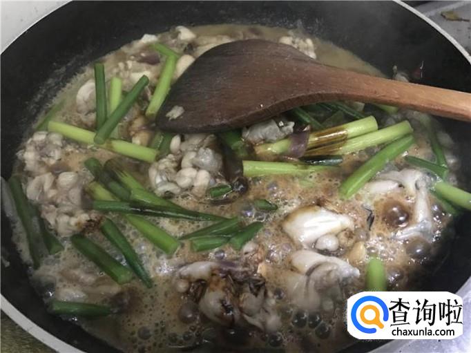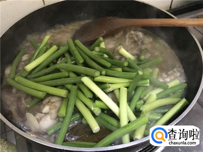 放入蒜薹。等到牛蛙煮得差不多熟的时候,将蒜薹放入锅中,然后均匀翻炒一下,让蒜薹能融入到牛蛙肉中,这样彼此的味道才能交换,这样蒜薹味道更香,牛蛙也更好吃。