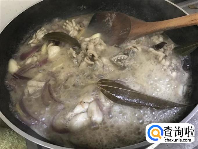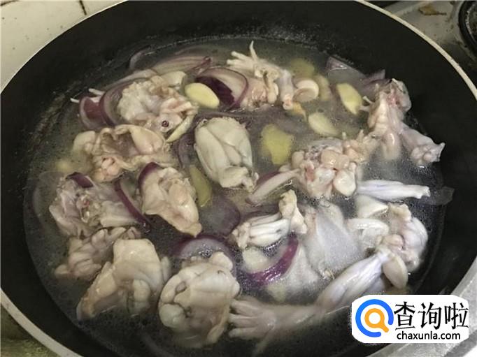 倒入适量的水。接着往锅中倒入适量的水,然后搅拌一下,水最好是能没过牛蛙,这样才能让牛蛙受热均匀,更容易煮熟来。