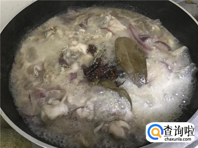 等到锅中的水沸腾以后,放入适量的香叶和八角,也要放入一些辣椒,这样会更好吃,也能更加入味。牛蛙肉要有点辣才会更有味道,如果不喜欢吃辣的话,可以少放,根据自己的口味来调整。