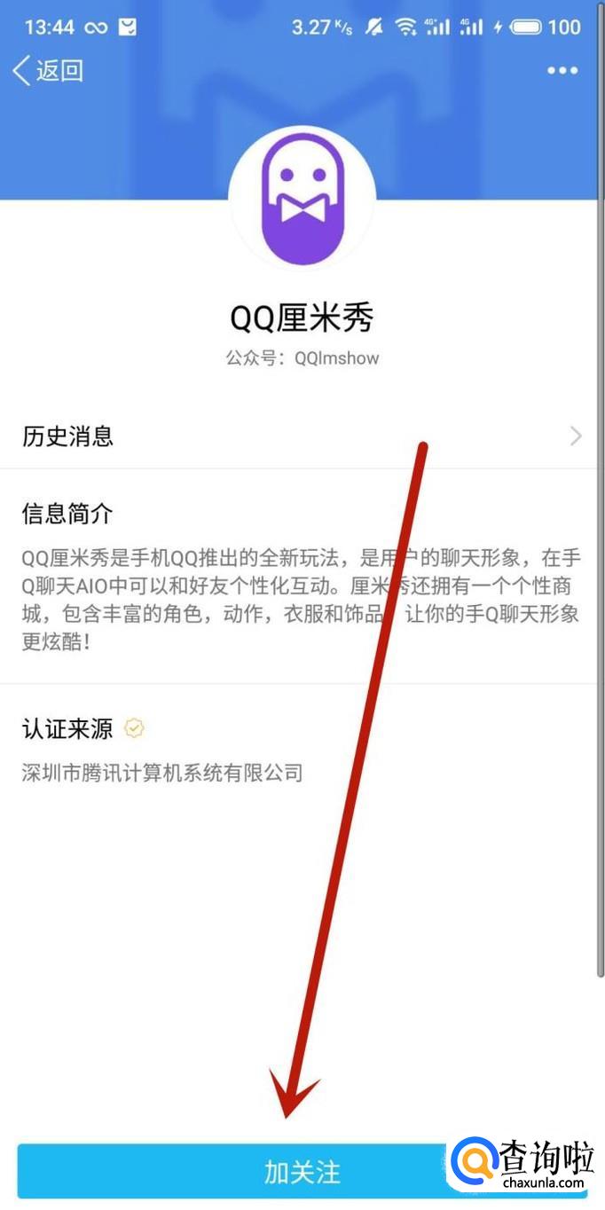 QQ厘米秀开启需要在公众号页面搜索“QQ厘米秀”并进入,点击“加关注”,然后在“好想玩呀”位置点击“开通资格”即可;或者通过好友分享的厘米秀邀请链接开通即可。以下用安卓QQ版本V7.9.9.3965演示一下。