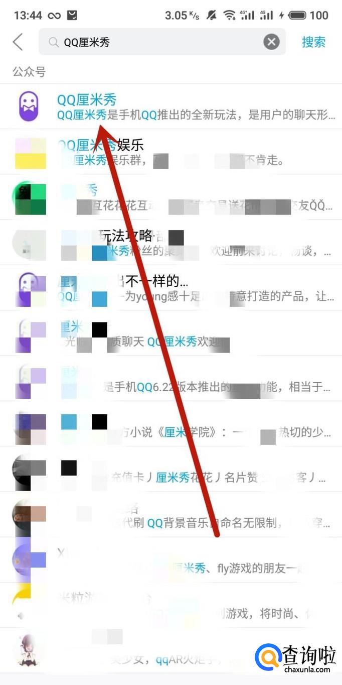 进入QQ搜索公众号页面搜索“QQ厘米秀”,点击并进入,如图所示。